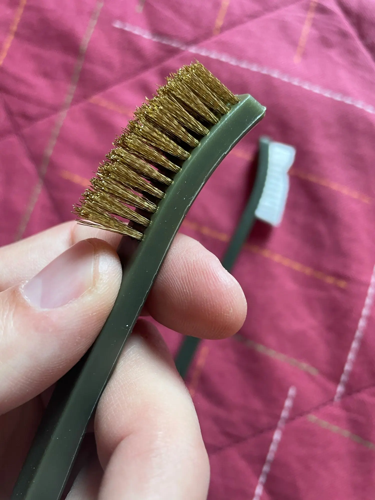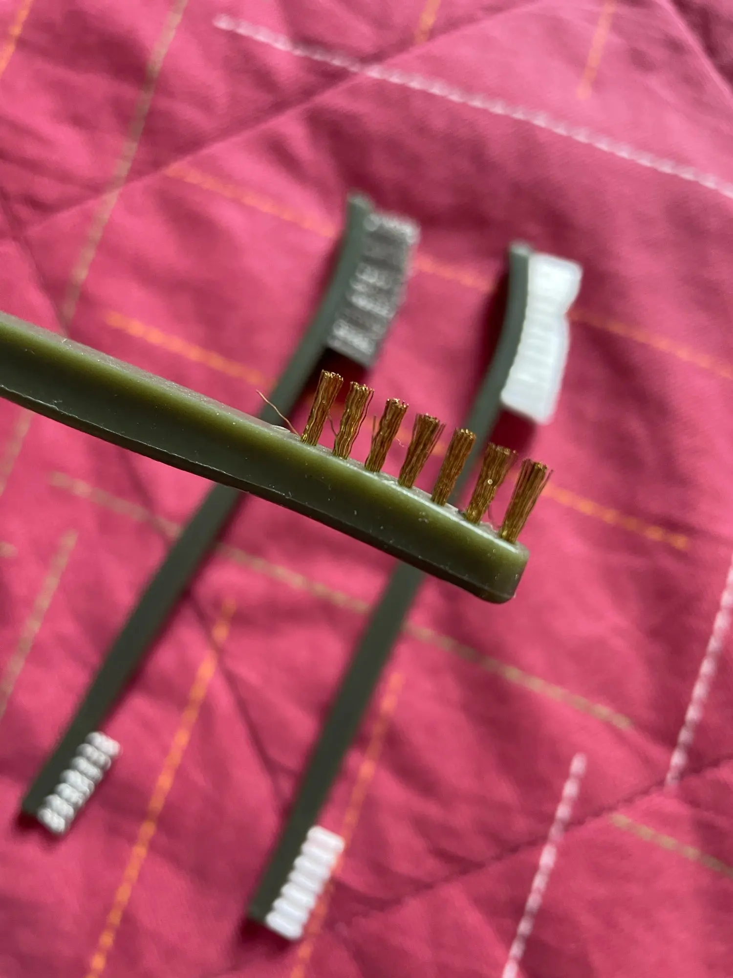 Очень доволен покупкой - по ощущениям хорошее качество. Латунь - настоящая, не магнитится, в отличие от белых, что продаются в других местах по 5 штук. Нейлон жёсткий. В общем - рекомендую.