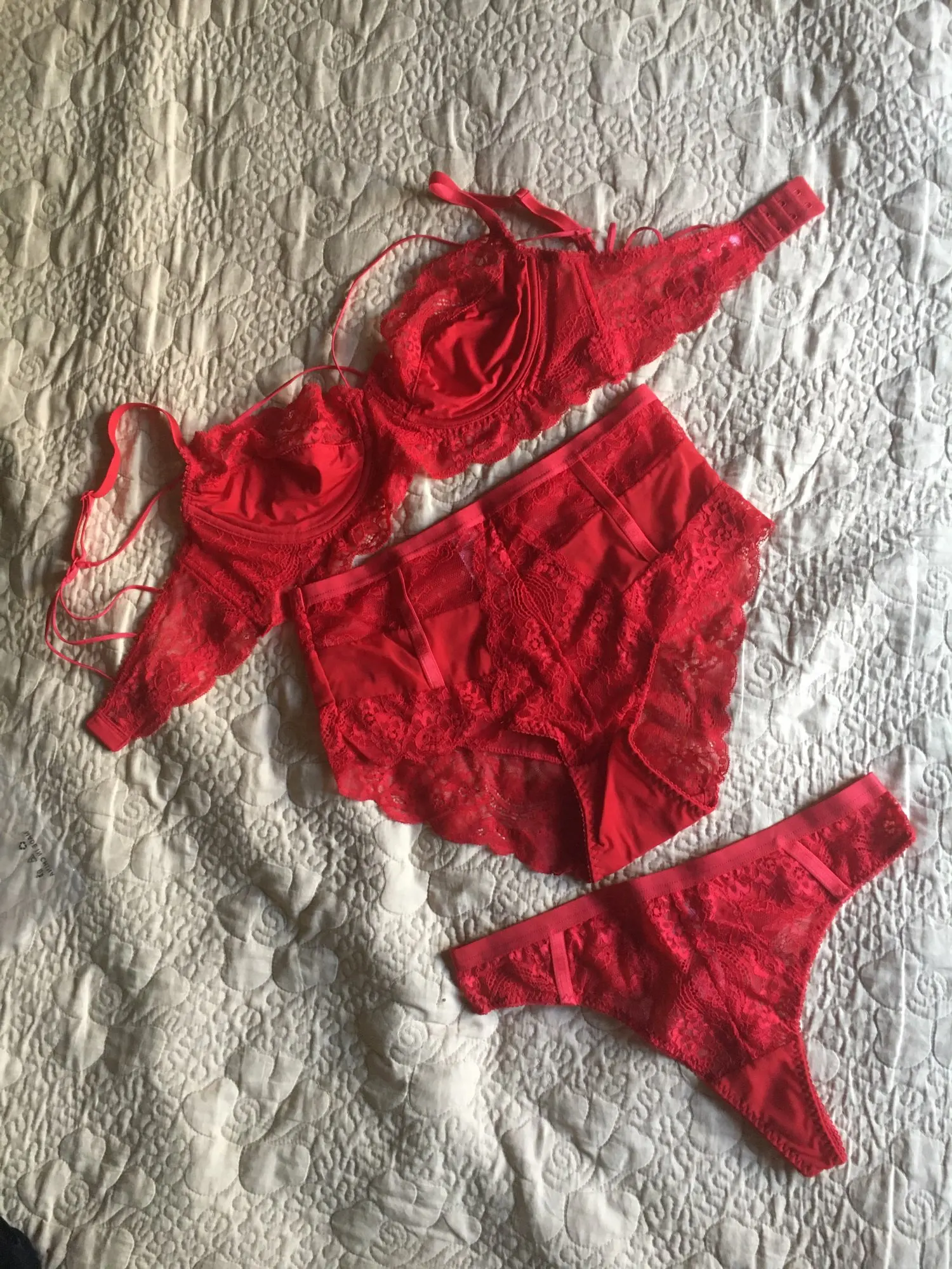 3 шт., женские кружевные бюстгальтеры, трусики с высокой талией и стринги