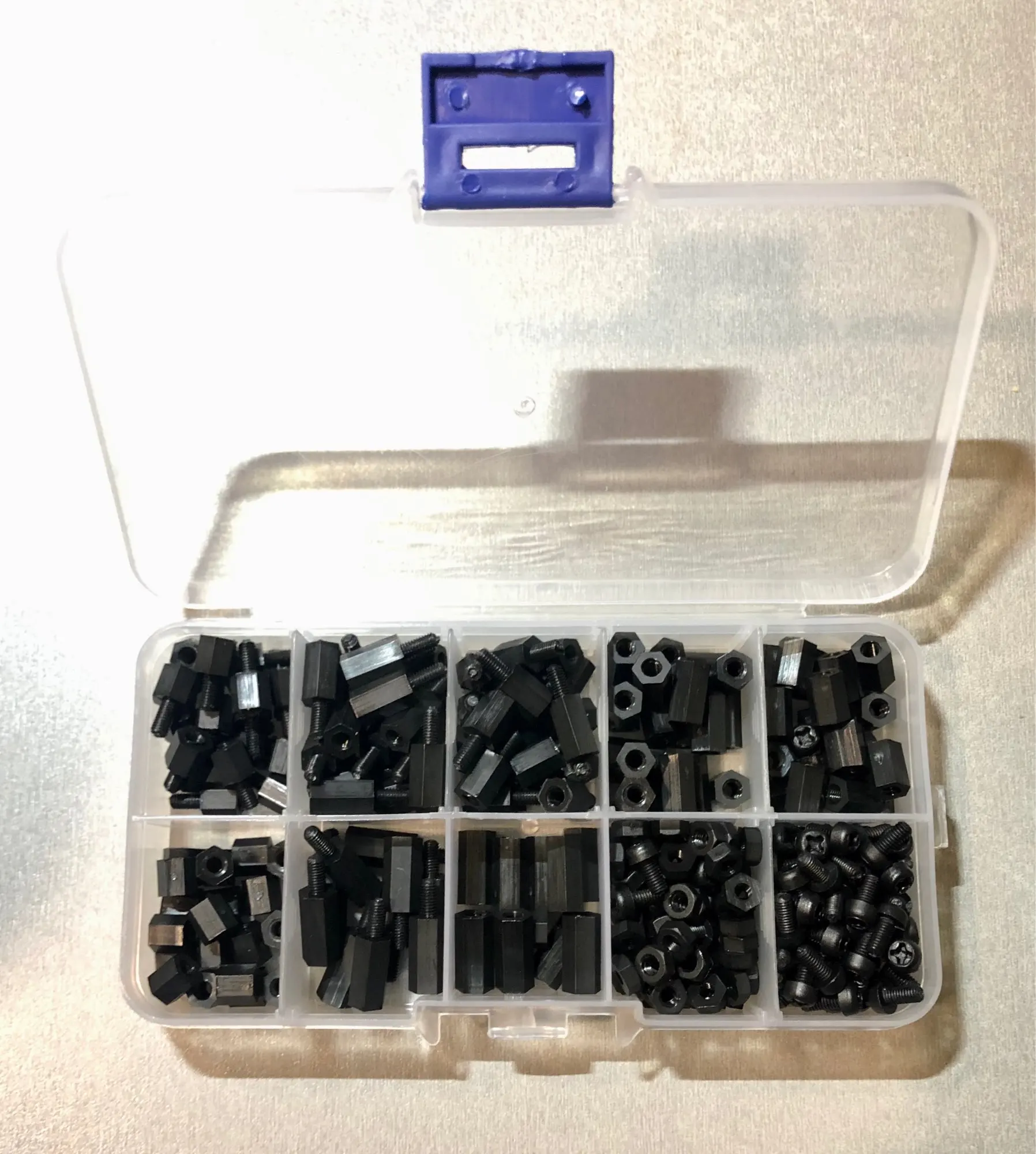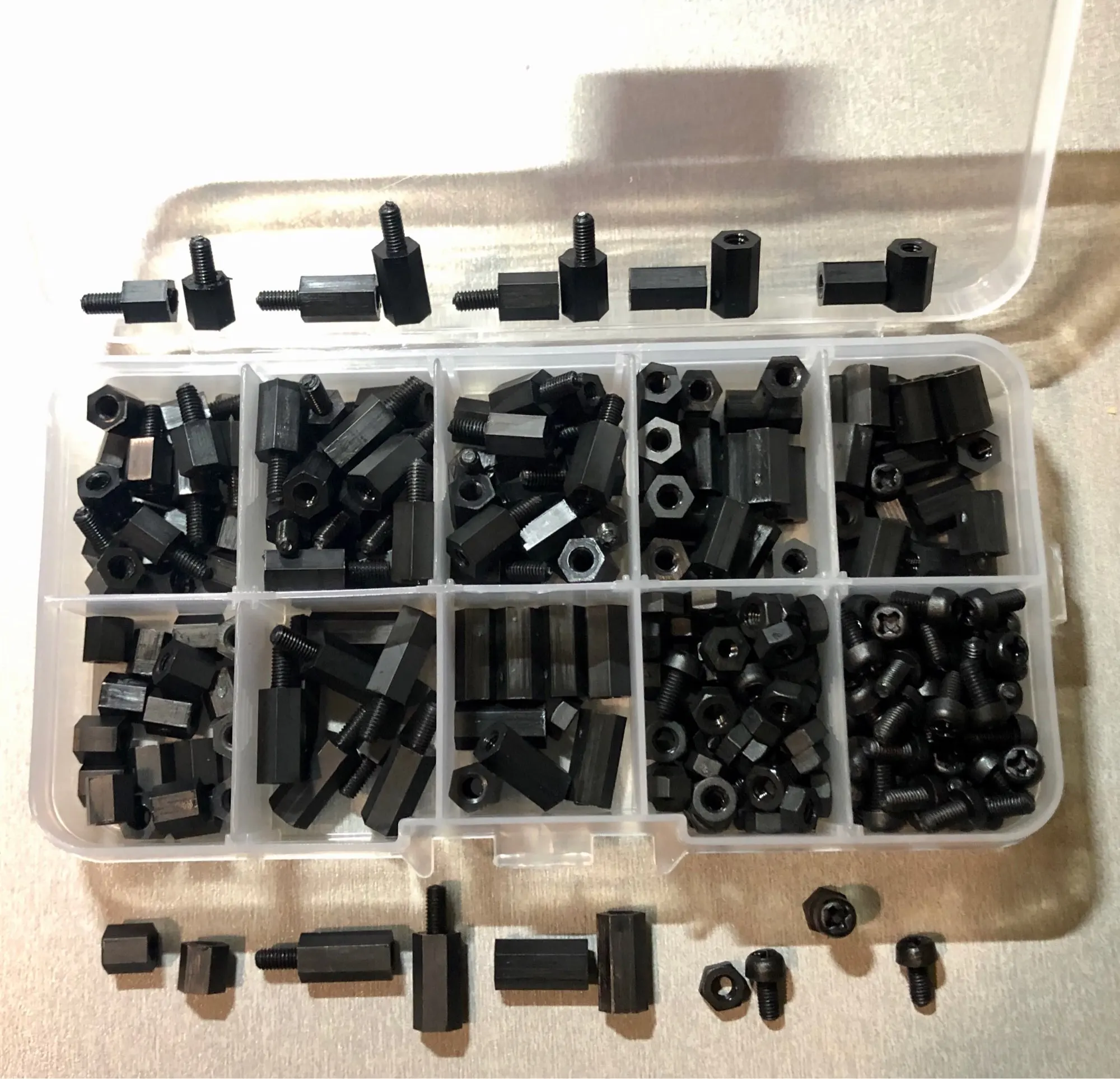 300 шт. 1 коробка (10 пластиковых коробок) M3 черный шестигранный нейлоновый разделительный рукав плоская головка нейлоновая пластиковая прокладка винт гайка
