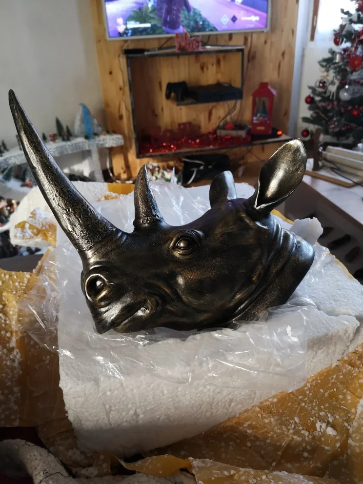 34 см Современный экзотический носорог из смолы, украшение на голову, статуи белого животного, ручные изделия, настенный Декор для дома, отеля, подарок