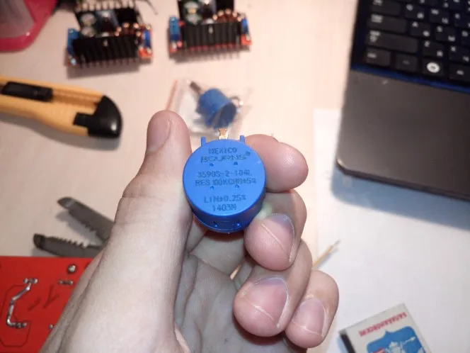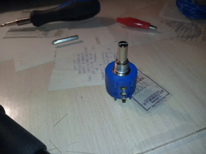 Будьте осторожны! При перевороте резистора (не в горизонтальном положении) он "сбрасывает" сопротивление. Если возьмёте его в качестве регулировки напряжения блока питания, то можете сжечь что-либо из-за скачка напряжения