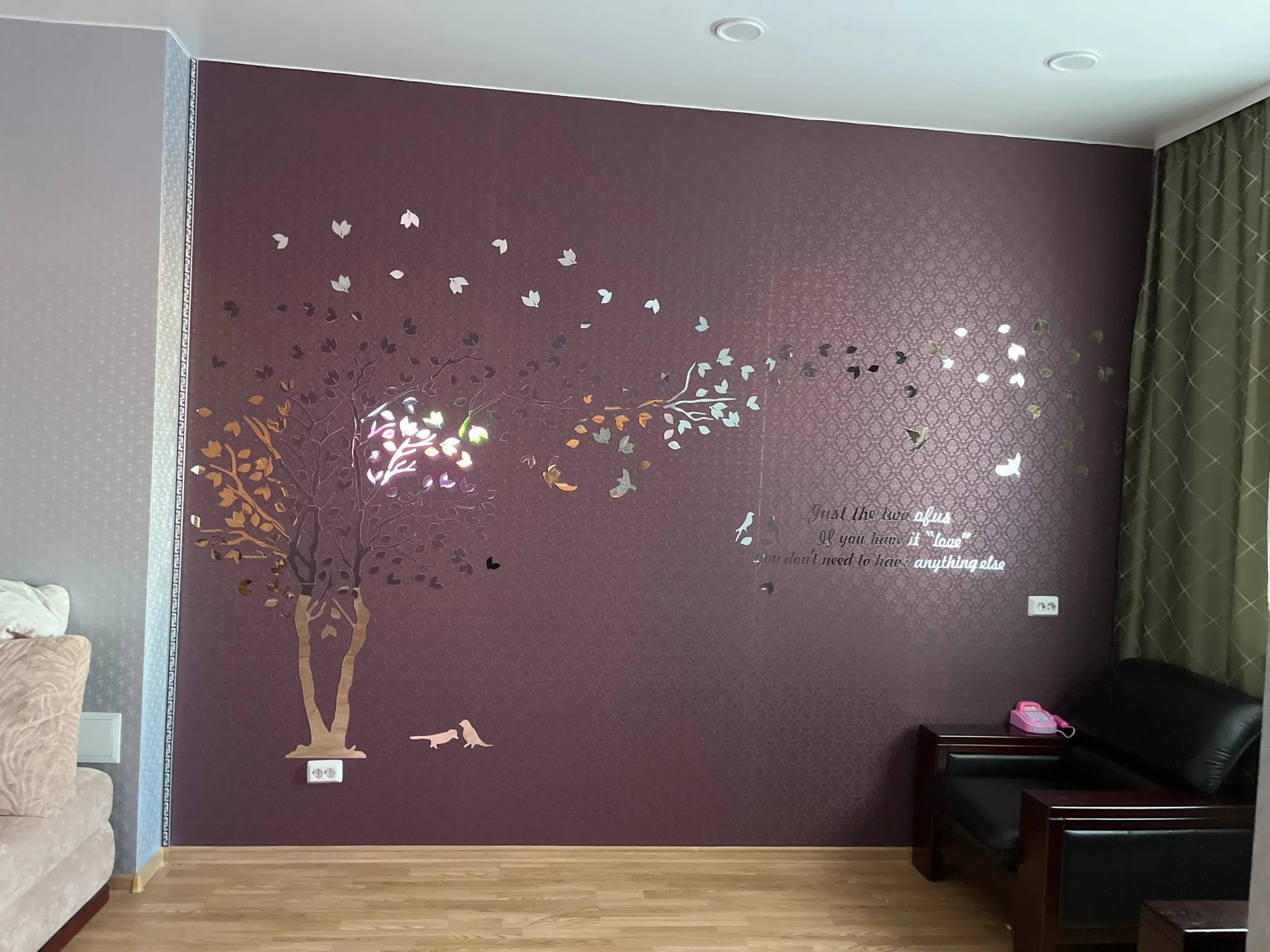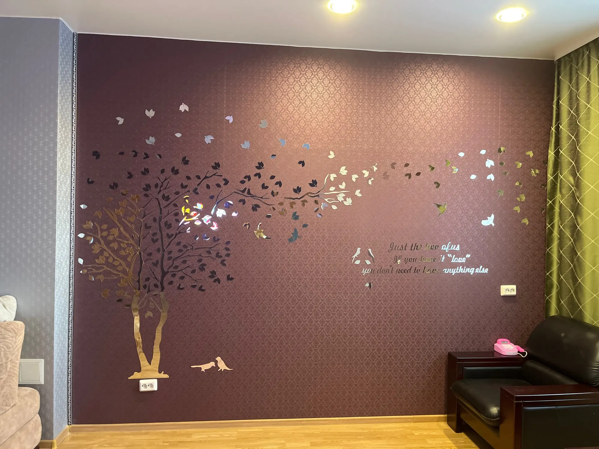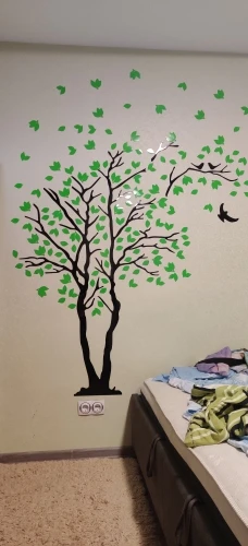 хорошо подумайте, прежде чем клеить все листья и надпись. Мне больше нравилось в просто голое дерево, более органично смотрелось