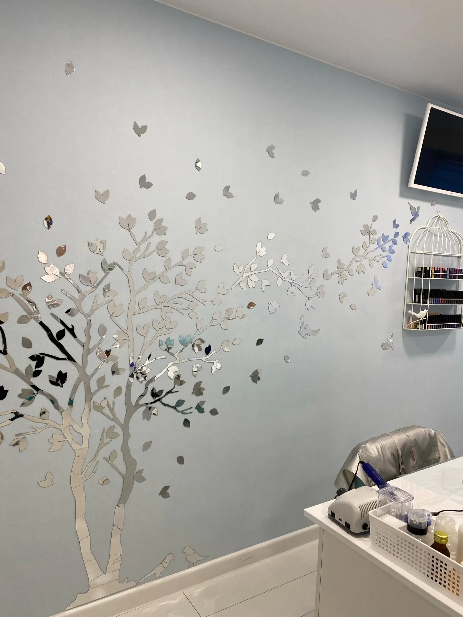 клей хороший,если приклеил, то уже не оторвать....дольше всего собирать дерево. как снять защитную пленку из зеркальной поверхности? можно использовать не нужный кусочек, дотрагиваясь клейкой стороной стороной к защитной пленке. за 10 мин. очистила все изделие. Очень оригинально смотрится. (но не знаю, как отрывать придется, когда надоест, клей очень прочный). Спасибо продавцу, дёшево и красиво