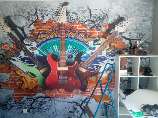 3D фрески на заказ, обои, гитара, скалы, граффити, искусство, сломанная кирпичная стена, KTV бар, инструменты, украшение для дома, настенная роспись, фреска