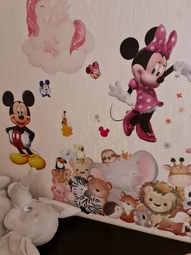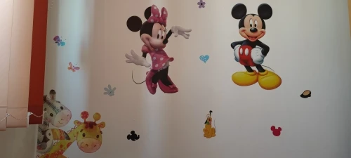 3D Мультяшные наклейки на стену с Микки и Минни для детской комнаты, спальни, настенное украшение, стикер для комнаты принцессы
