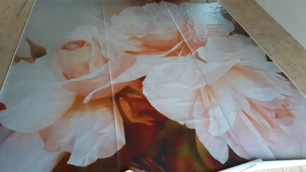Доставка долгая , но упаковано хорошо , не повредились , местами кажется что рисунок не состыкуется с другим куском , в живую чуть темнее чем на фото