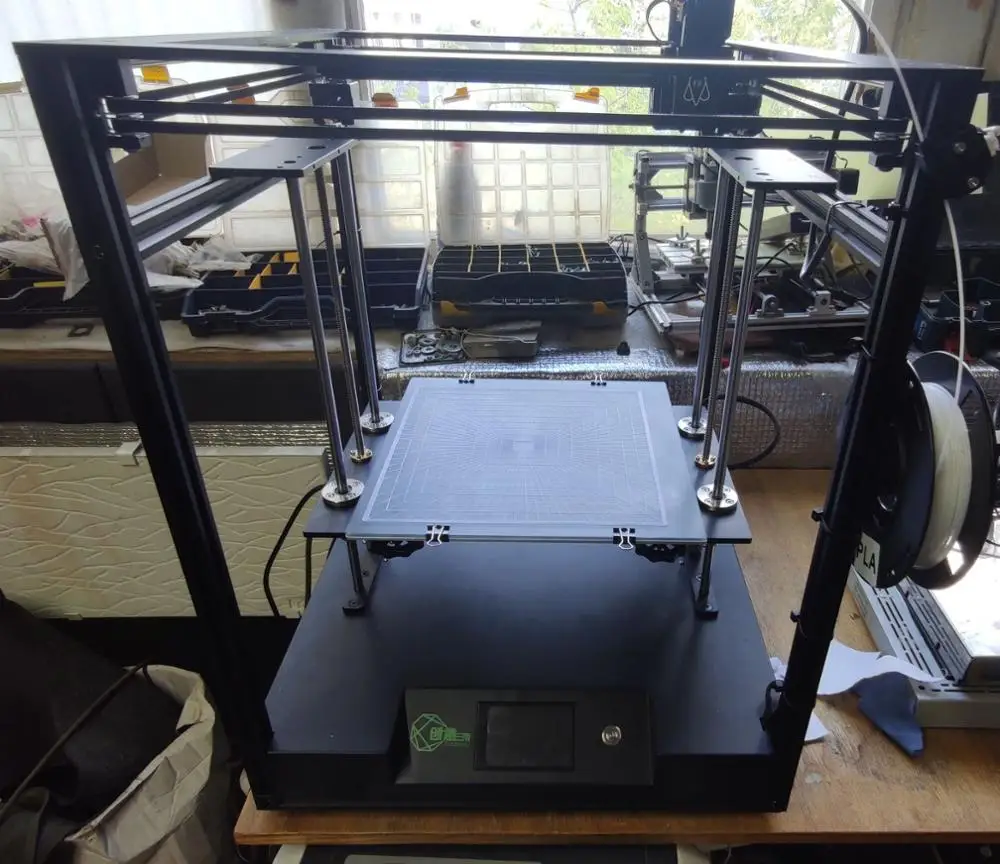 За свои деньги принтер рекомендую к покупке. Хорошая техническая поддержка. Большая область печати. Есть датчик окончания пластика. Есть функция авто отключения после завершения печати. Проблем с напечатанными деталями нет. Из минусов: 1) кривой стол. Стекло решает проблему со столом если попадется не кривое стекло. У меня стекло в центре выпуклое. Тест печати сетки прошел (см фото). 2) После сборки каретка с печатной головой не перемещалась по рельсам. Причина была в затекшем клее к зазор между блоком (колесико) и винтом. (см фото красным цветом выделено).