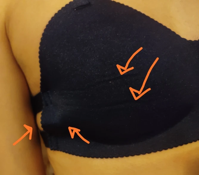 Очень маленький. Плоские чашки уменьшают, придавливают грудь. У меня 2 размер, вообще мне мал. Дочери подростку тоже мал. Объем маленький по диаметру, я вешу 54 кг, и он мне жмёт, врезается.