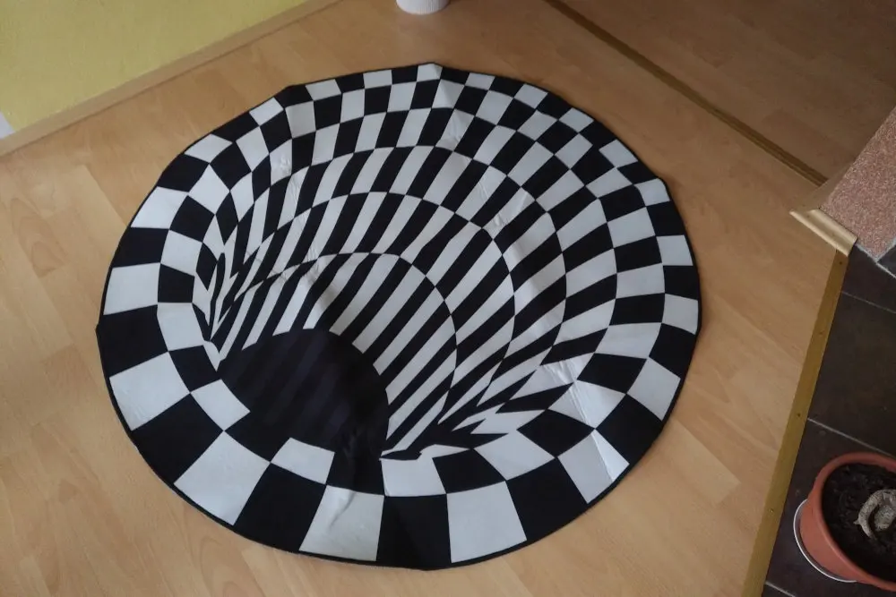 3D вихревой иллюзионный ковер на заднюю панель Скандинавский современный черный круглый ковер с отверстиями геометрический Противоскользящий ковер для гостиной домашний декор