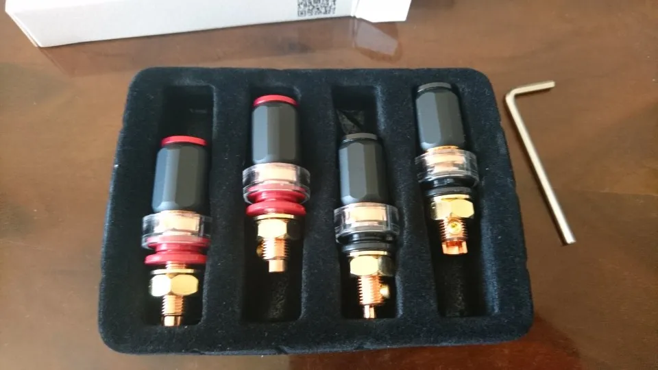 есть сомнения в материале терминала. на упаковке отсутствует маркировка. однако, конструкция очень добротная. сравнение с качественными терминалами из латуни с золотым покрытием ставит настоящие терминалы на уровень выше: фактура, точность звука с этими терминалами возросла. могу рекомендовать
