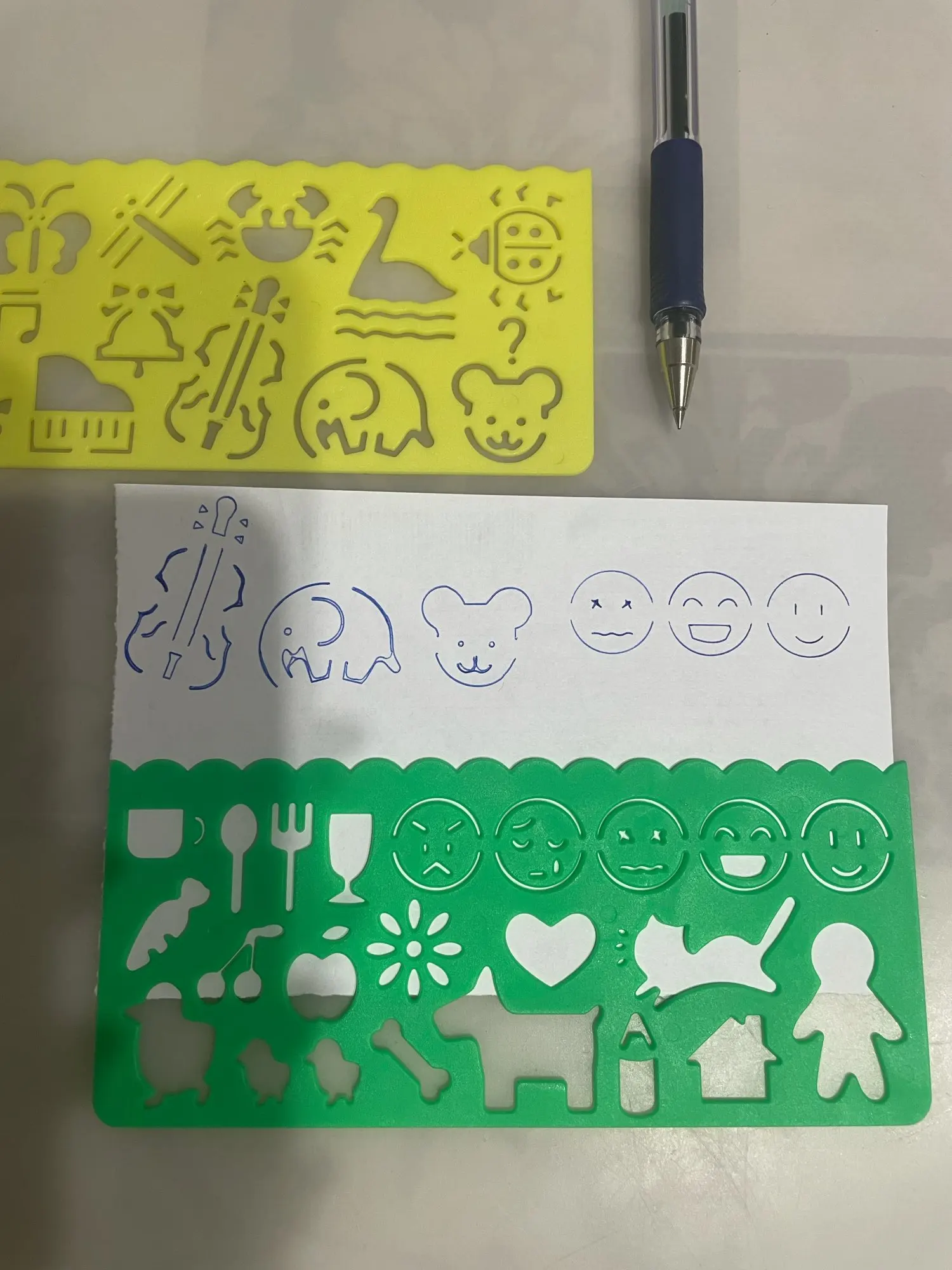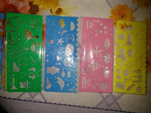 Трафаретки точно такие, как заявлено продавцом. Но в некоторых местах ручка не проходит, чтобы прорисовать линию. Например, на смайлах. Для этого нужен карандаш с очень тонким грифелем.