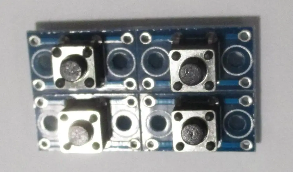 Продавец быстро отправил заказ. Доставка заняла три недели, трек при выбранной службе доставки отслеживался. 4 кнопки без фиксации в наборе, распаянные на маленьких печатных платах, работающие на размыкание. Пригодятся для работы с различной электроникой. Остается только подпаять провода, и закрепить печатные платы с кнопками винтами или приклеить их. С узких сторон печатной платы контакты закорочены между собой. С широкой стороны платы контакты кнопки включены параллельно, и работают на замыкание при нажатии.