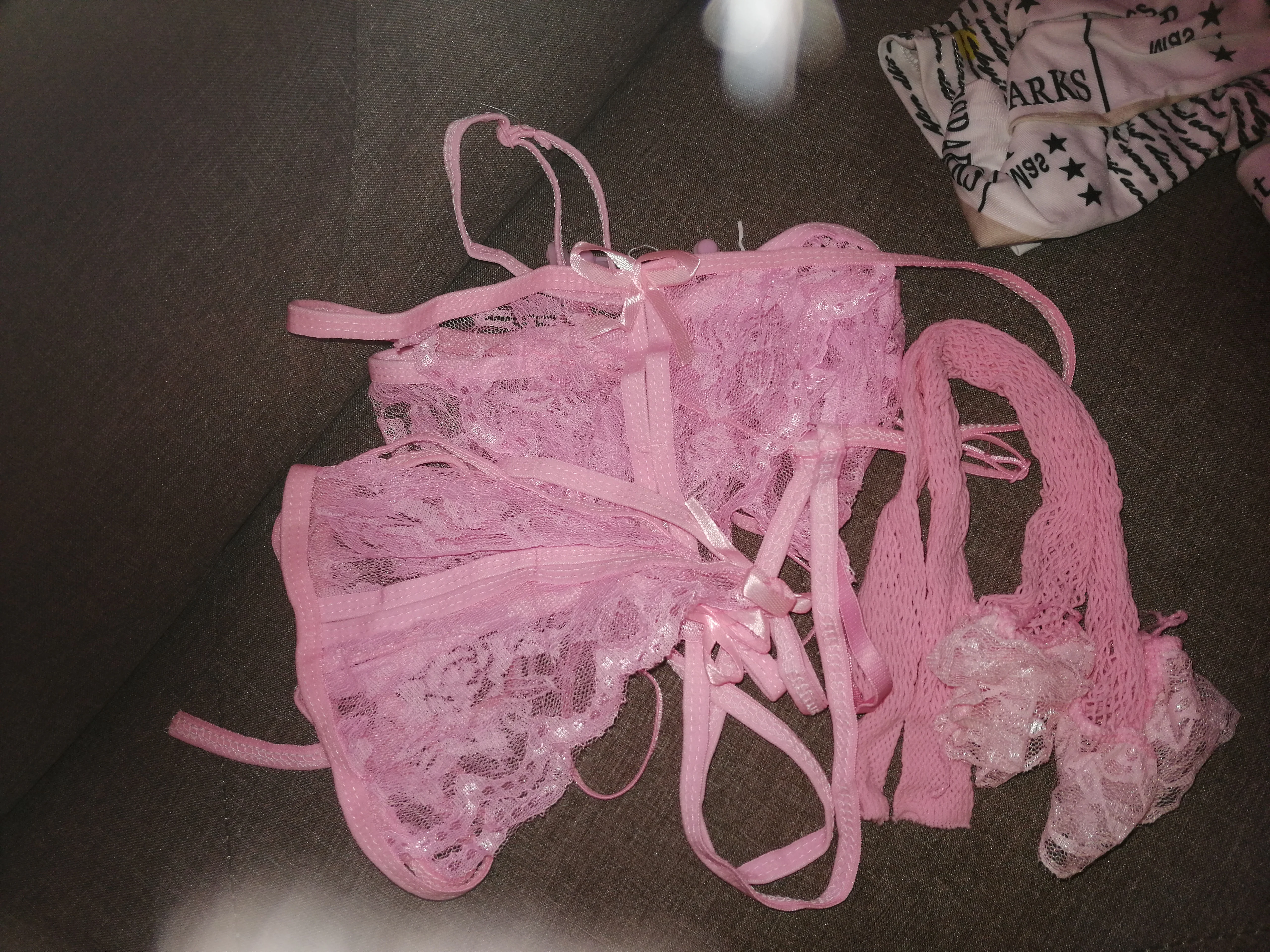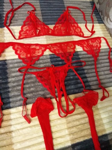 Оказалось большим по размеру. Лямки на лице тянутся. Пояс тоже большой,сидит криво. А вот чулки больше похожи на гольфы. Не понравилось. Не стоит своих денег. Даже на раз не одела.