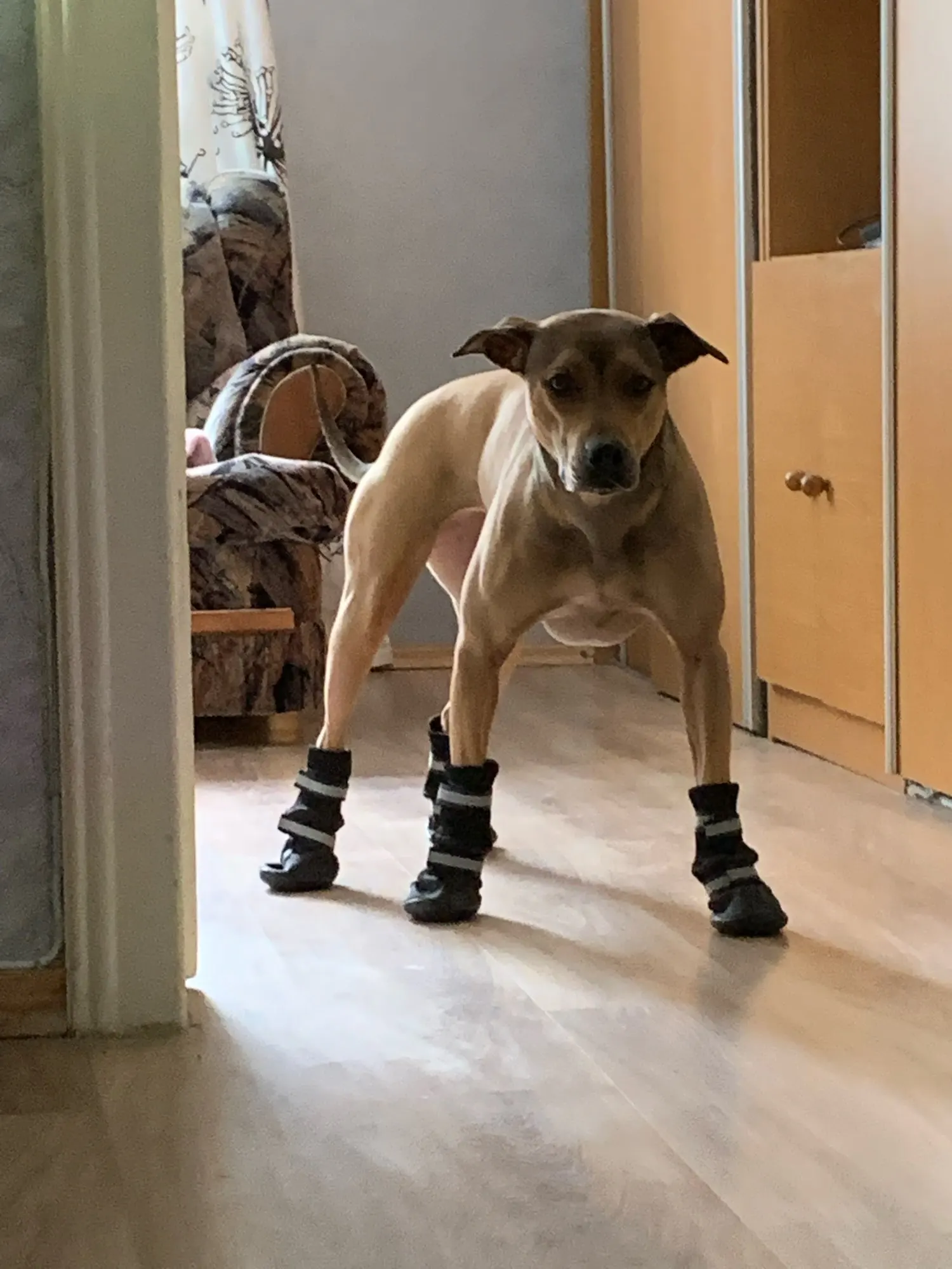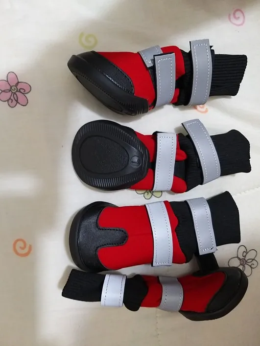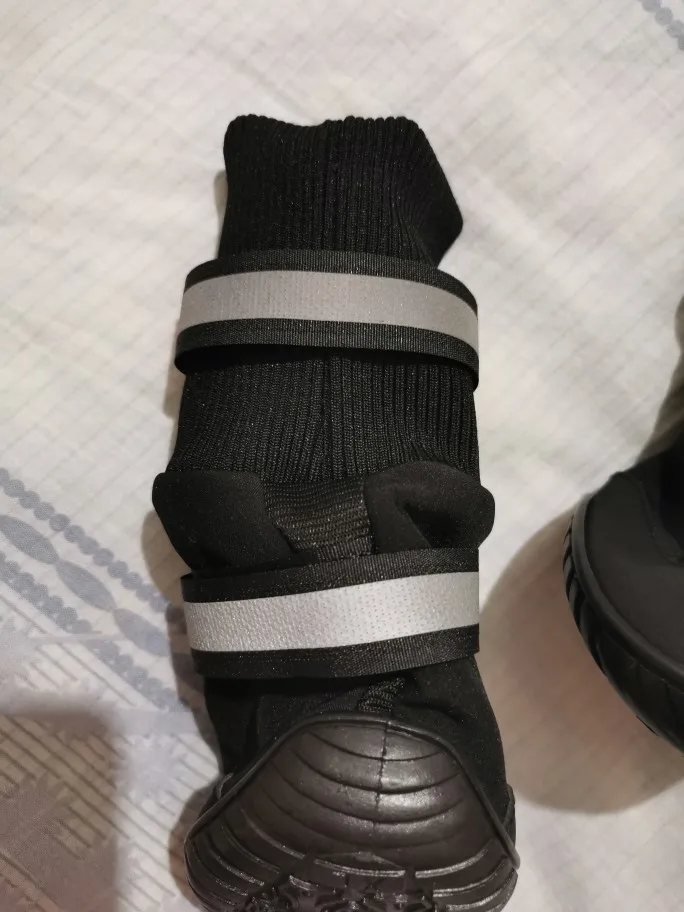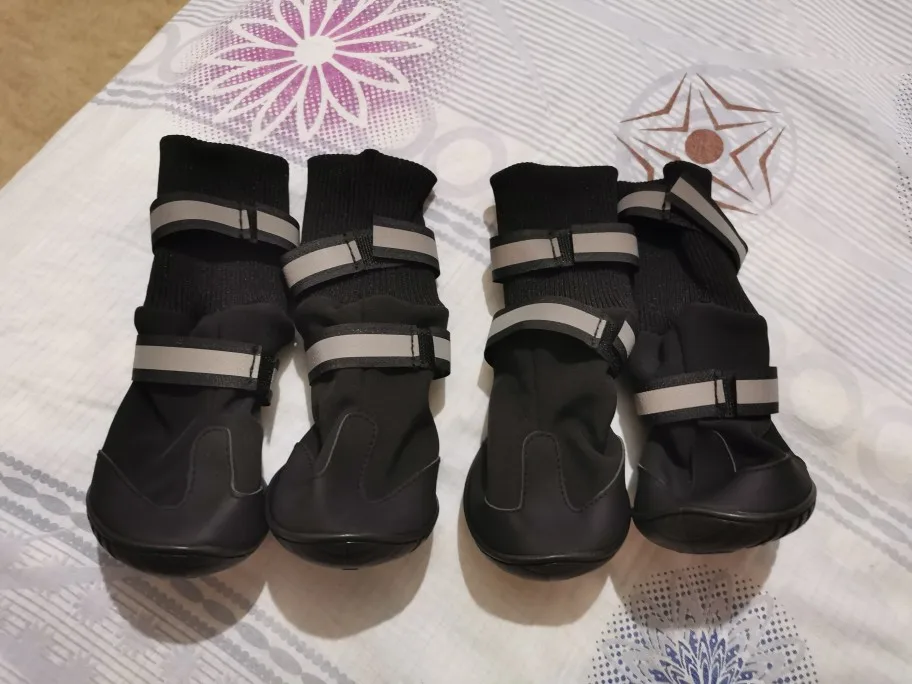 балдежные отличные ботинки,красивые и качественные с флисом внутри. оочень классно сшито.Была долгая отправка,шло месяц. собач быстро привык,но ужасно скользит.