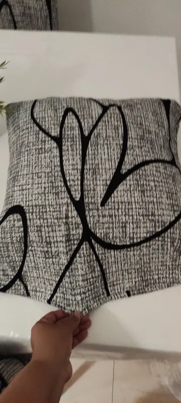 Материал приятный на ощупь, но недостаточно плотный для диванных подушек, по моему мнению. Тянется ткань хорошо, но если происходит натяжение трещит и расходится по швам, нитки не прочные. В целом весь комплект понравился. По размеру все подошло. Про общение с продавцом можно сказать что ждать ответа приходится очень долго.