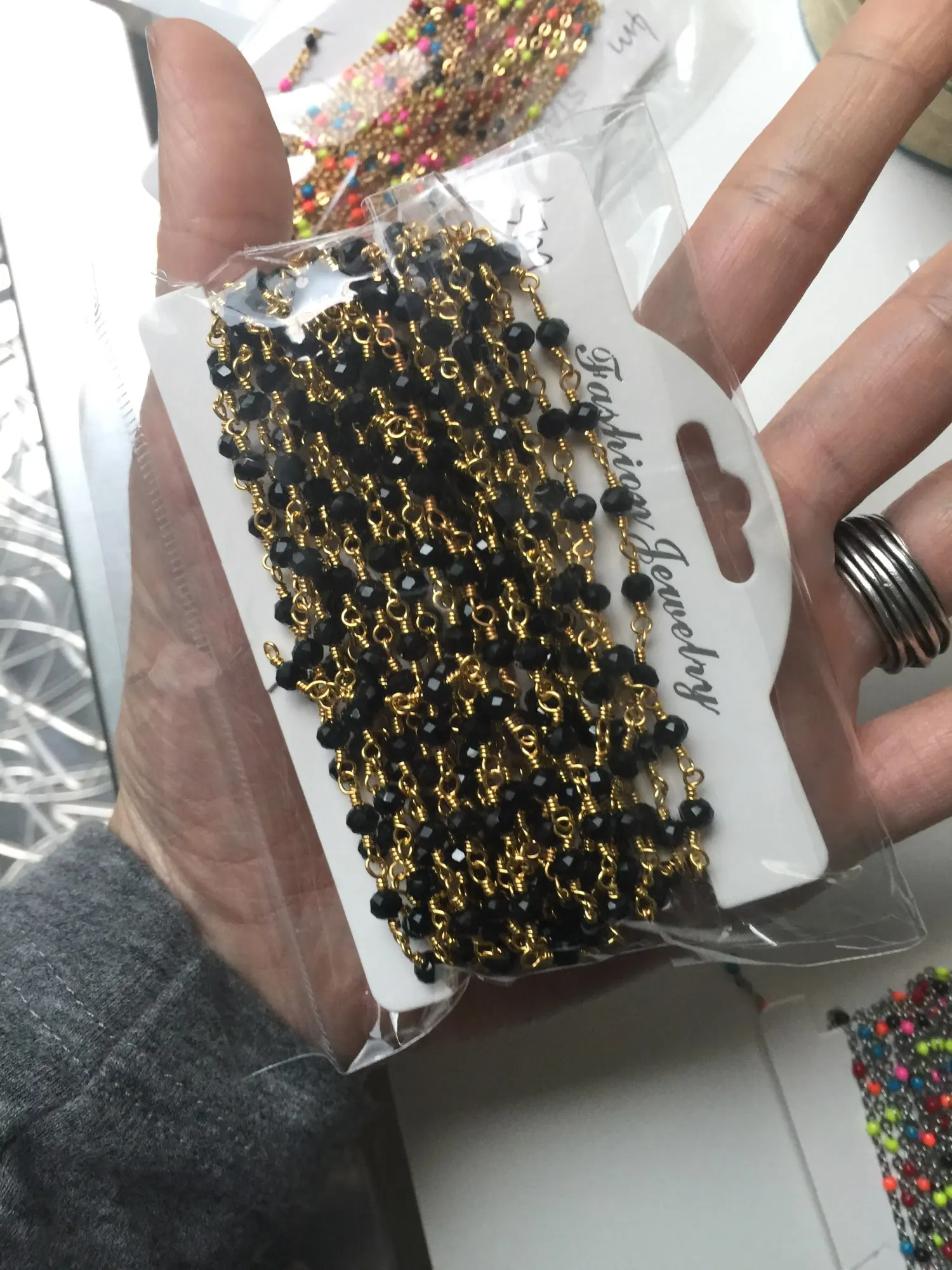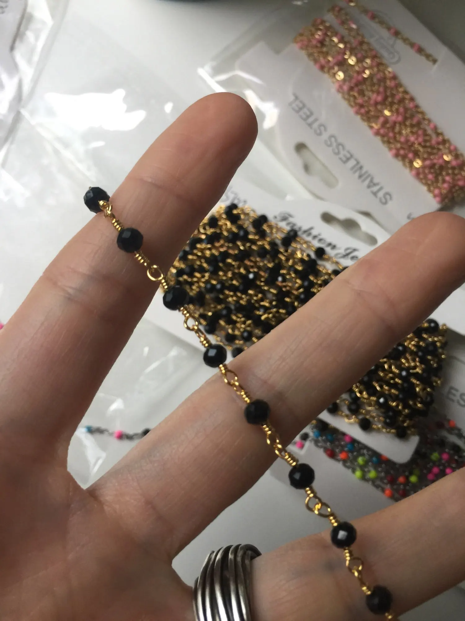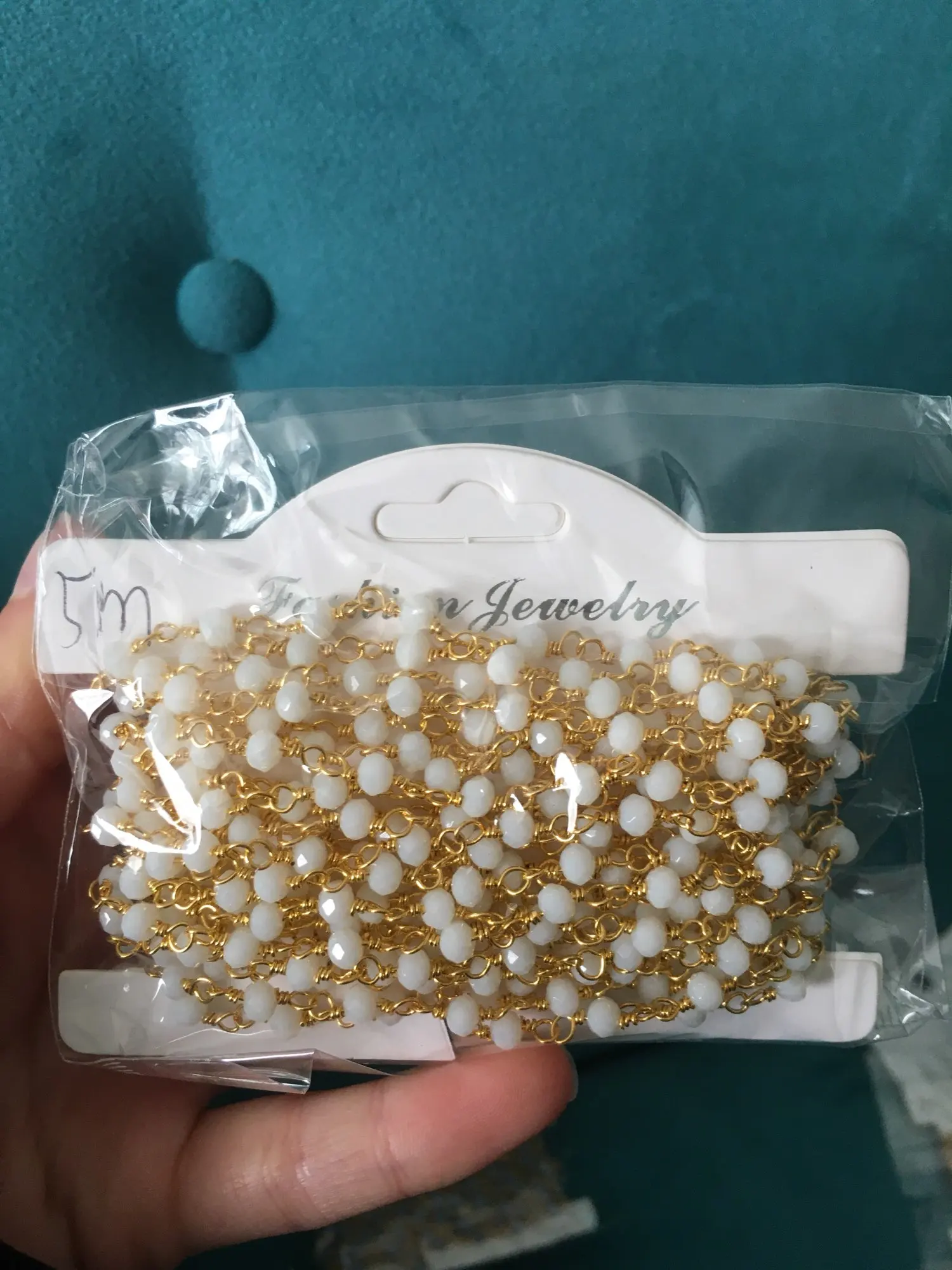 5 метров, латунная цепочка из бисера, 4 мм, синие, красные, черные, белые, голубые бусины, Проволочная упаковка, позолота 18 К