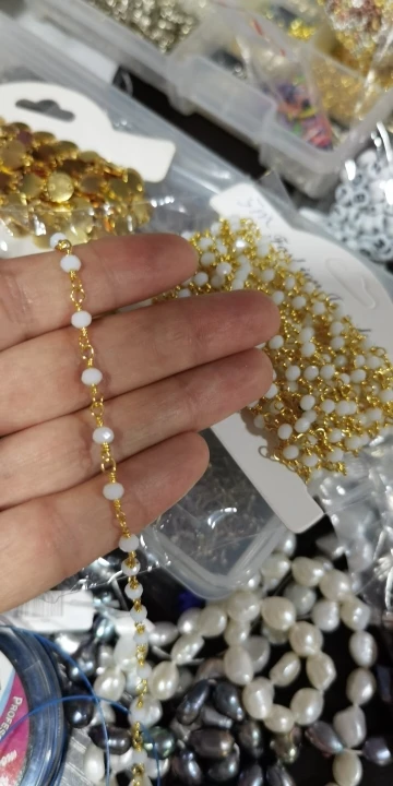 Gold Plated Brass Glass Glass Beads Chain