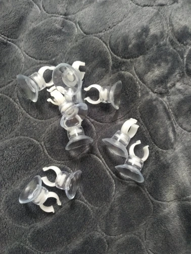 Доставка 4 месяца!! Сами присоски хорошие. За счёт прозрачности почти не видны в аквариуме.