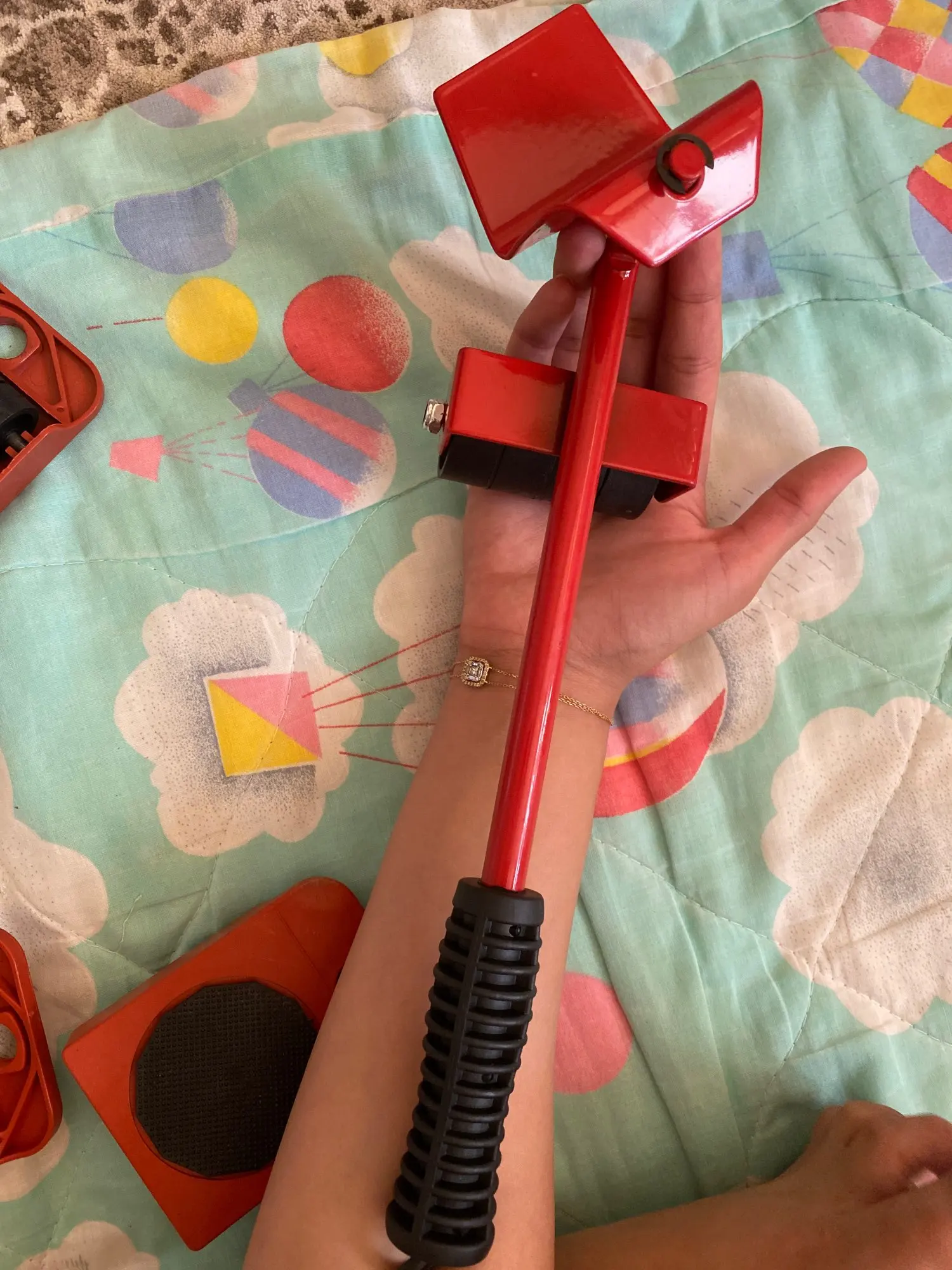 Работает, но не всегда. Диван приподнял, но колеса под ножки не вставила. Не хватает высоты подъёма. Пришлось приподнимать в ручную и подставить колеса. Диван отодвинула легко. А вот тумбу под телевизор, не смогла поднять совсем.