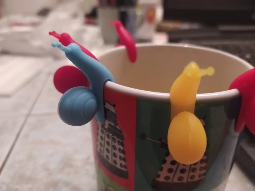 Широкий захват, только на толстостенные чашки, с остальных сваливается. Забавные, но голубых не положили. Ну так, побаловаться на пару раз можно