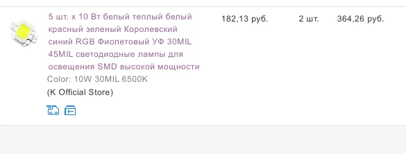 Заказывал 10W 30MIL 6500K Получил 10W 30MIL 3200K