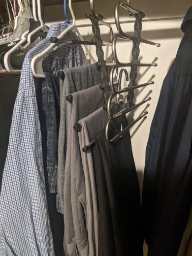 очень практичная вещь! На мой взгляд пять тяжёлых шерстяных вещей не выдержит долго, но летние брюки легко держит, не прогибается! теперь меньше путаницы в шкафу, можно сортировать вещи!