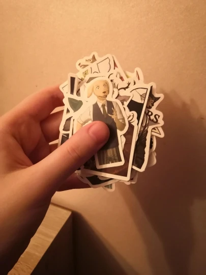 клёвые наклейки. на вид 50. пересчитывать не буду, мне впадлу. матовые. в подарок наклеечку положили))