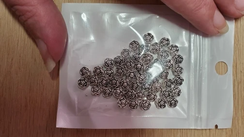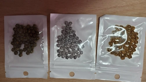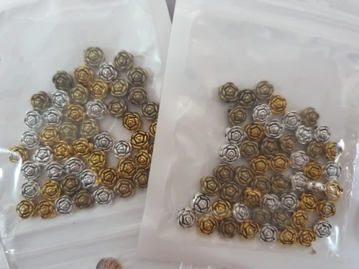 Очень симпатичные маленькие металлические бусины в форме розочки. Цвет полностью совпадает с заявленным. Все ровненькие, аккуратные. по количеству все совпадает. доставка быстрая, 2 недели до Подмосковья. спасибо продавцу.