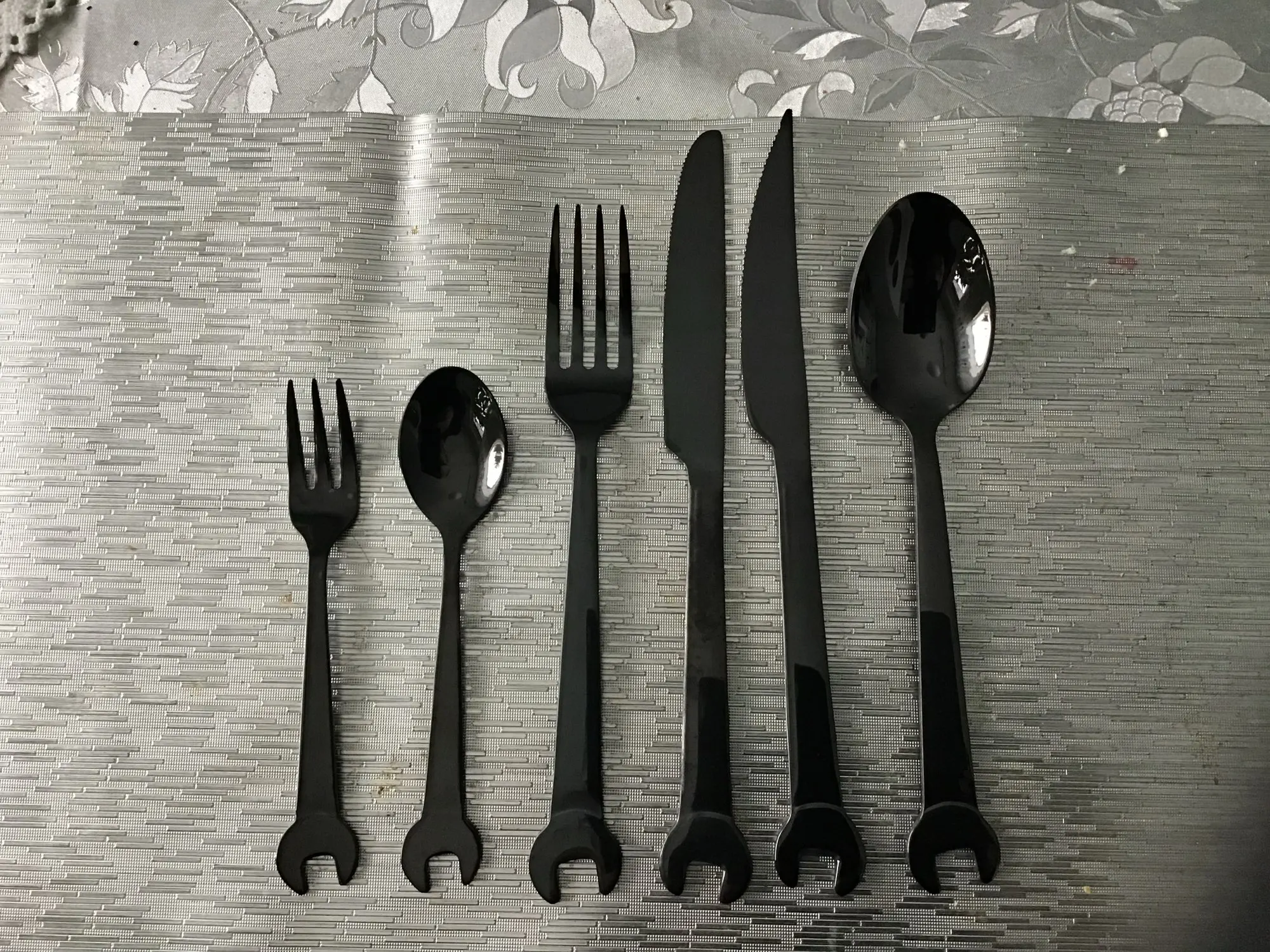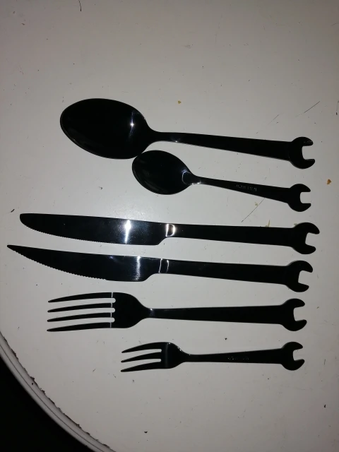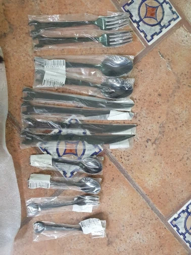 На одном ноже есть какие-то жёлтые вкрапления...Покупала мужу в подарок, ему понравилось, а это самое главное ! ;)