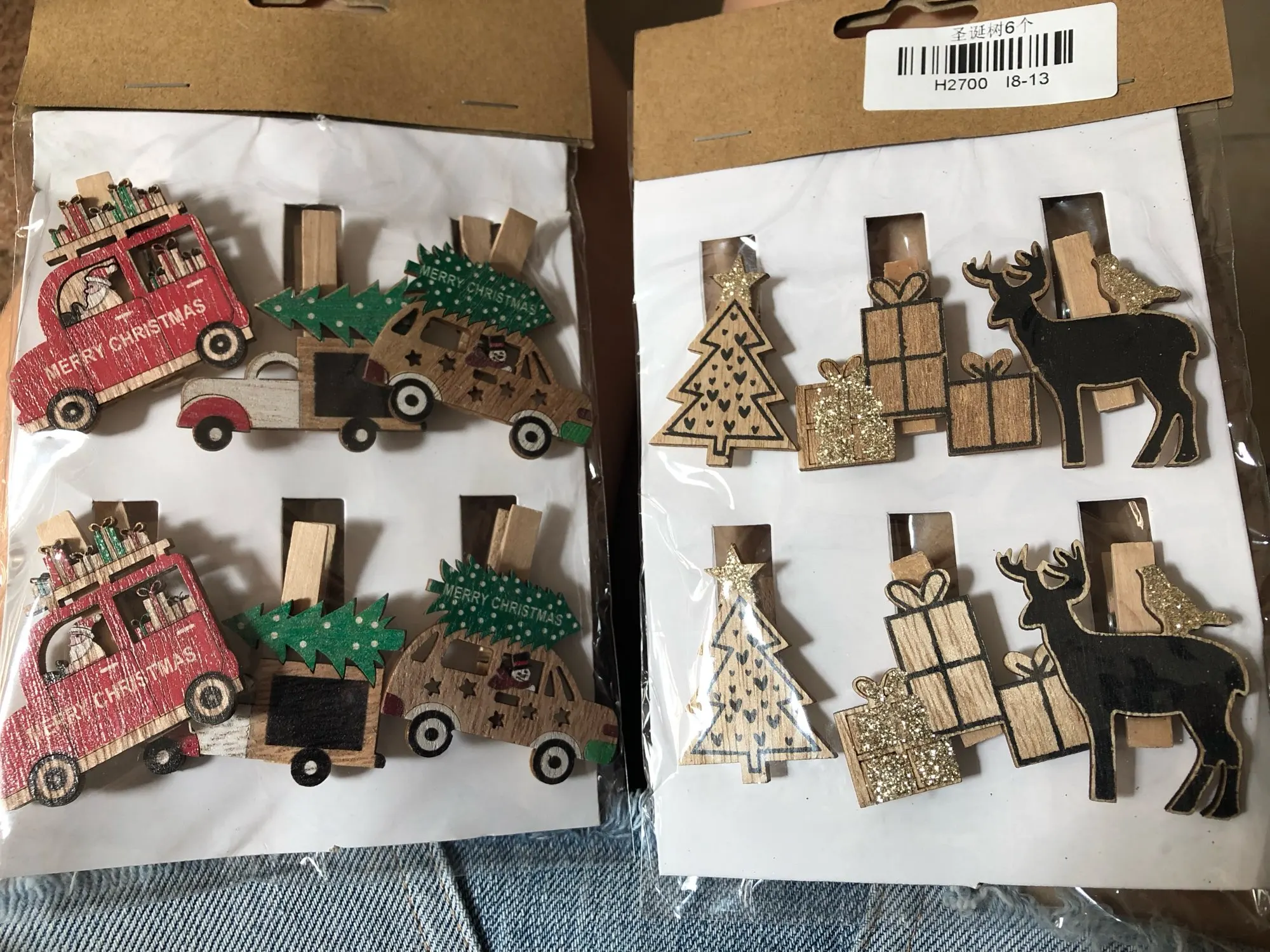 6 шт./лот рождественские деревянные зажимы в форме Санта-Клауса, снеговика, оленя, рождественские зажимы для фотографий, Новогодние декорати...
