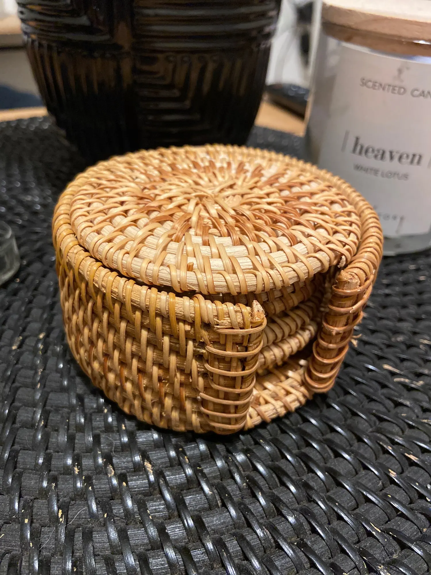 6 шт./подставки для напитков, набор для кунг-фу, чайные принадлежности, круглая посуда, столовые приборы, коврик из ротанга, плетеная чашка, коврик диаметром 8 см