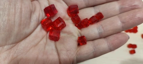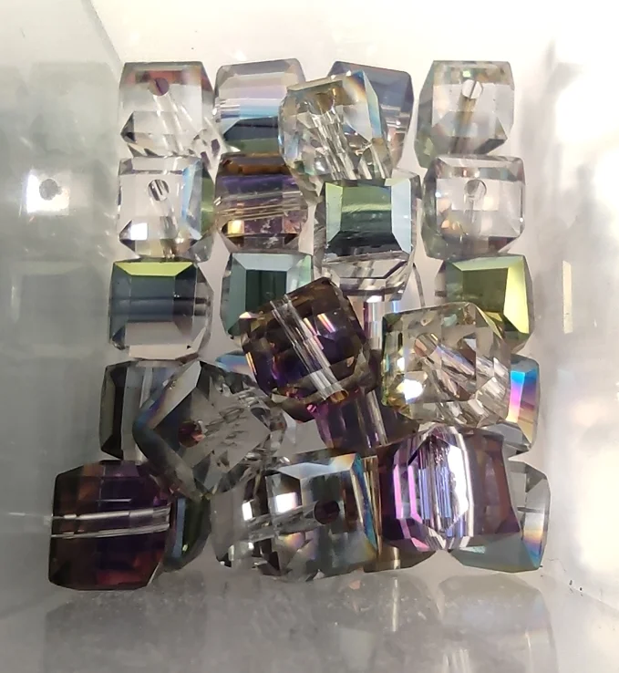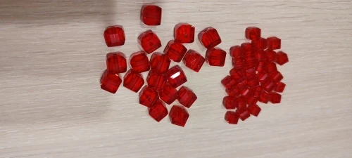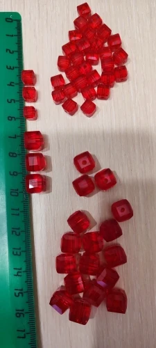 Бусины упакованы в простые пакеты и пупырку. По 30 штук. Два покетика лопнули и немного рассыпались. Бусинки стеклянные, немного нервные, есть маленькие царапины и сколы.Дырочки не все посередине, не много скошены. Но, это если близко разглядывать. А вообще неплохо.