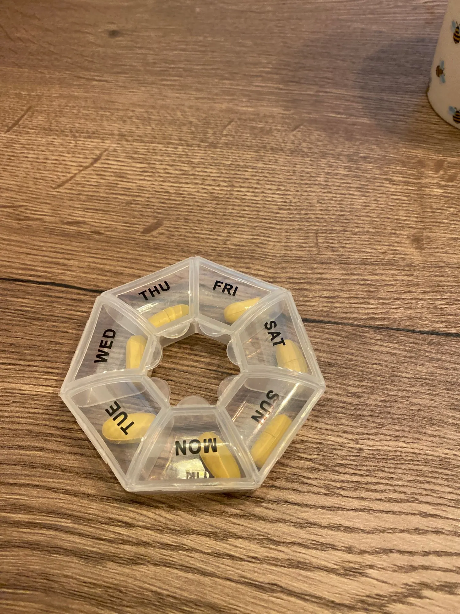 Удобная вещь, но если много крупных витаминов нужно положить, кармашки закрываются с трудом. Небольшая, удобно брать с собой.