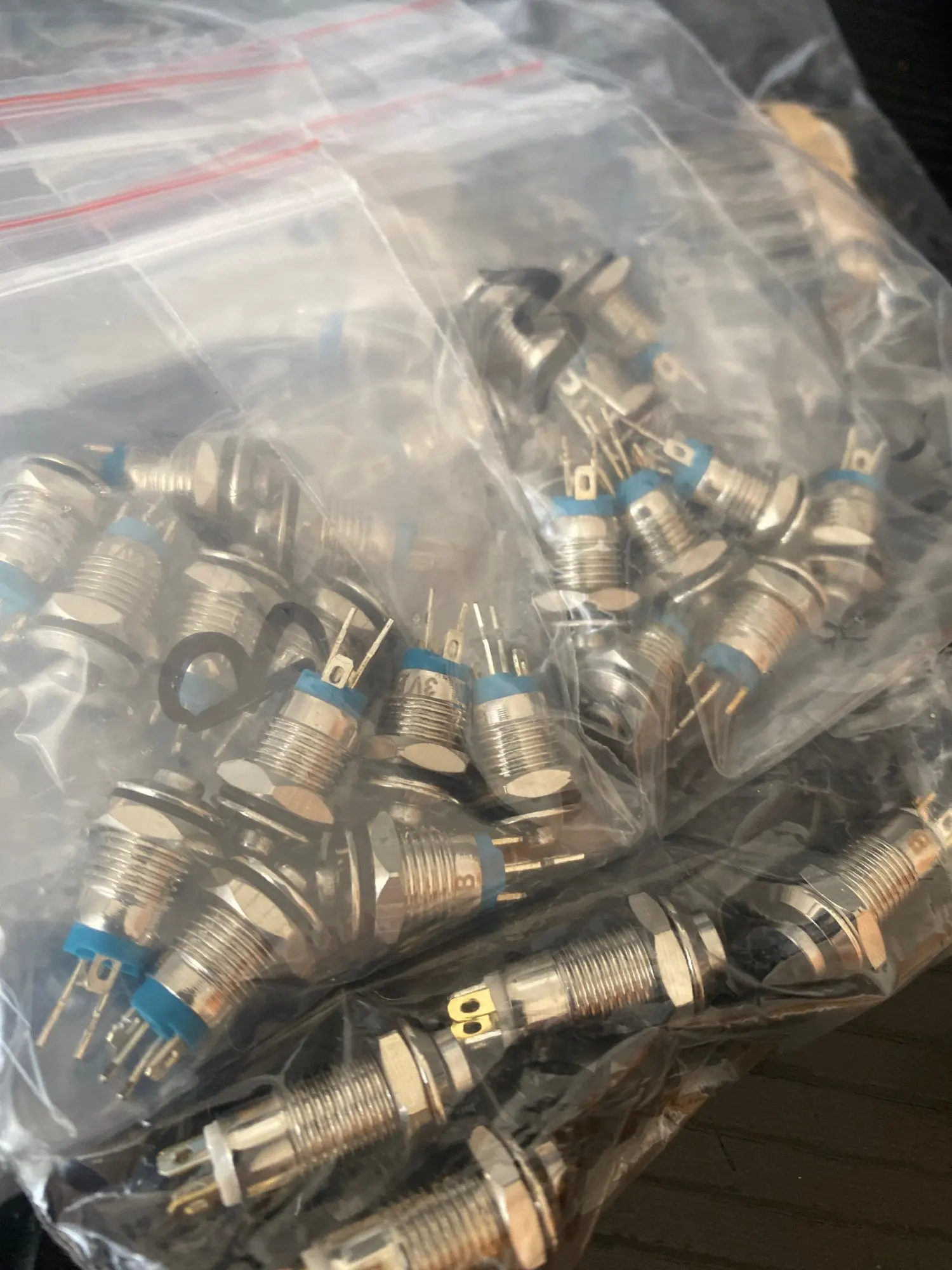 Брал 8 штук на пробу. Кнопки без фиксации, как и сказано в описании. Качество среднее. Обе кнопки с синим светодиодом постоянно застревают в нажатом положении, остальные вроде норм.
