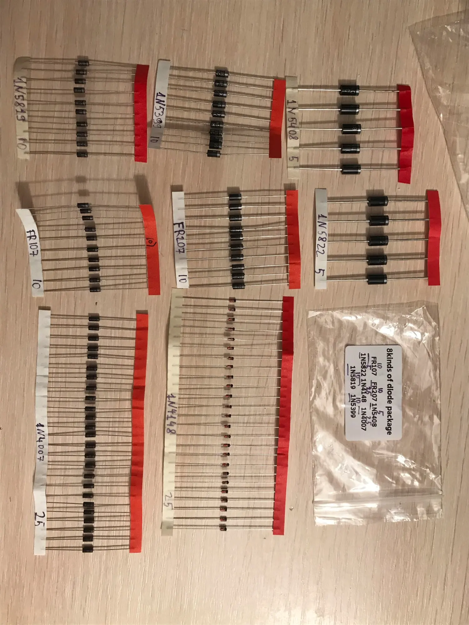 Доставка в Москву в сборной посылке недели три. Все 8 номиналов в наличии. Количества на фото. Выборочно проверил тестером - нормально. Полные рабочие показатели проверить не могу.