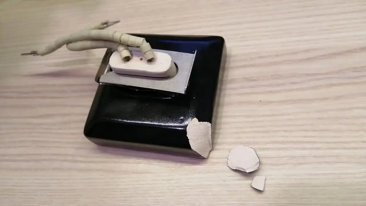 пришёл сколотым пришлось покупать термостойкую краску чтобы ИК излучение было равномерным,продавец вернул деньги за краску без вопросов