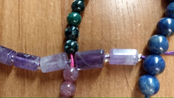 Красивые бусины, есть немножко коцки, но это натуральный камень, так что ожидаемо. На нитке 15 штук