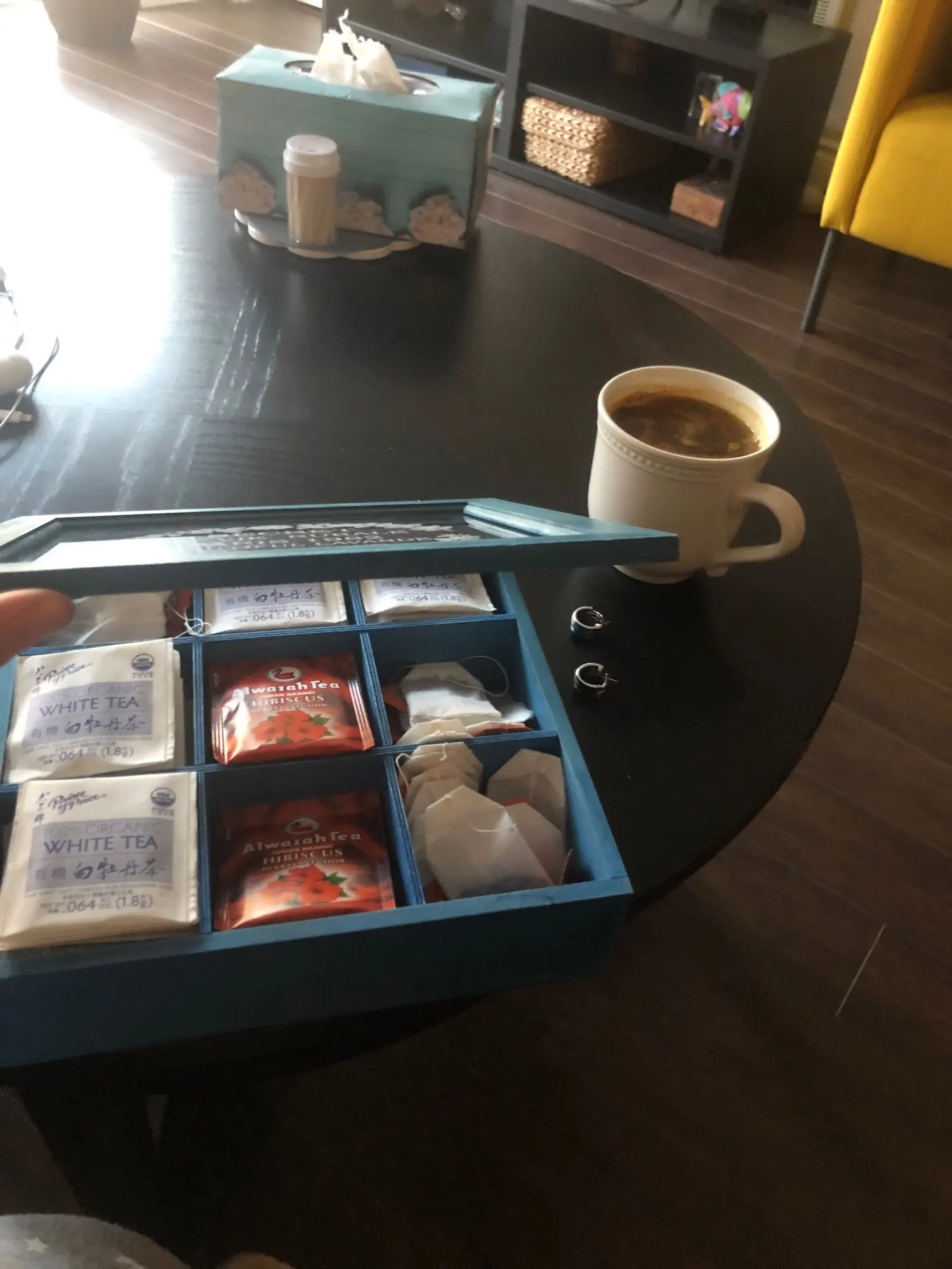 Пришлось снять крышку, не закрывалась из-за пакетиков с чаем