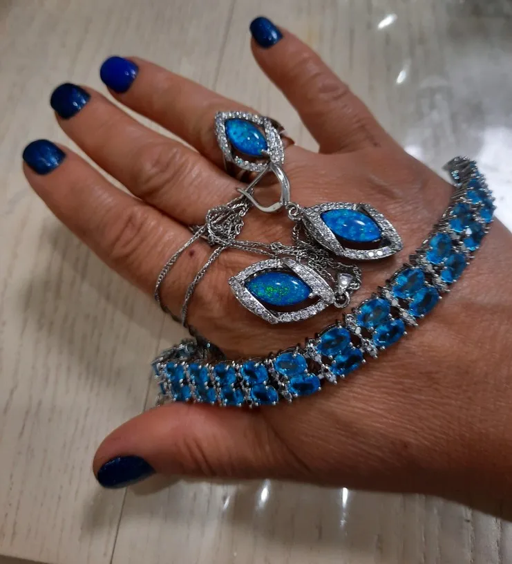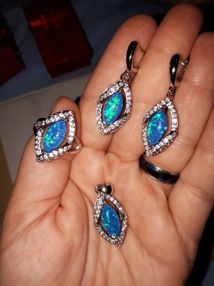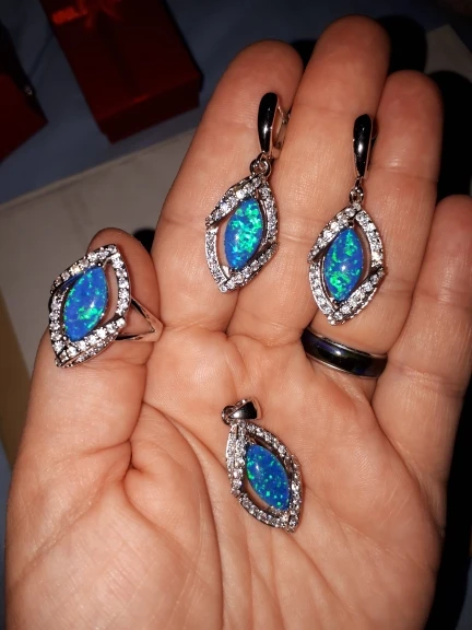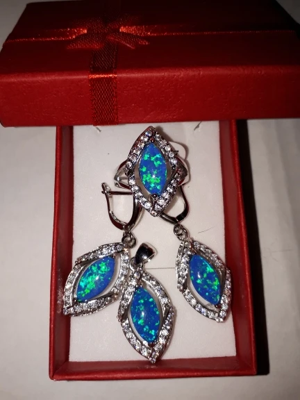 Гарнитур очень красивый! Описание соответствует полученному товару. Спасибо продавцу! Кольцо идёт размер в размер.