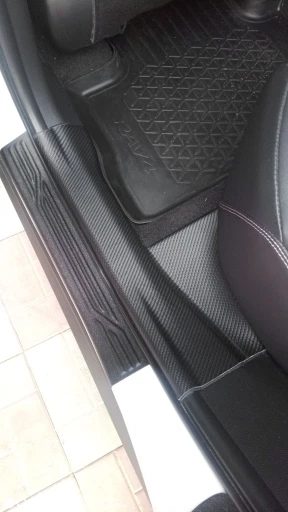 Выкройка не совсем точная, но материал немного тянется и наклеить при старании можно без складок, но без снятия накладок с машины трудновато. При отклеивании клей не остается на пластике. Мне продавец отправил сложенные в три слоя, не трубочкой, пришлось слегка прогладить через ткань утюгом дабымвыровнить складки. В целом хорошие.