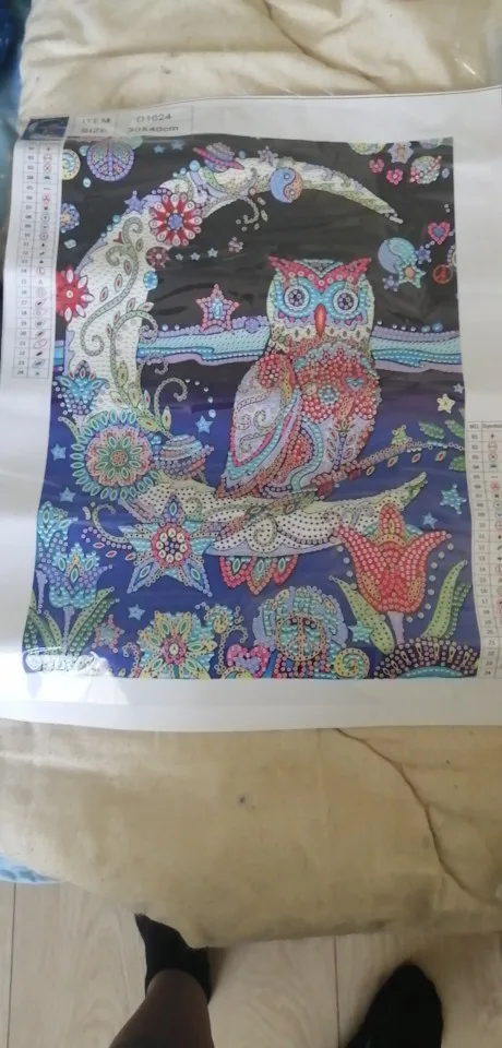 Посылка шла больше двух месяцев, упаковано нормально, в обычный пакет, но придется дожить под пресс, что б выровнять полотно, размер указан вместе с белыми полями, сама картинка маленькая, пропечатка хорошая, посмотрим, что получится, но хотелось бы больше размер .