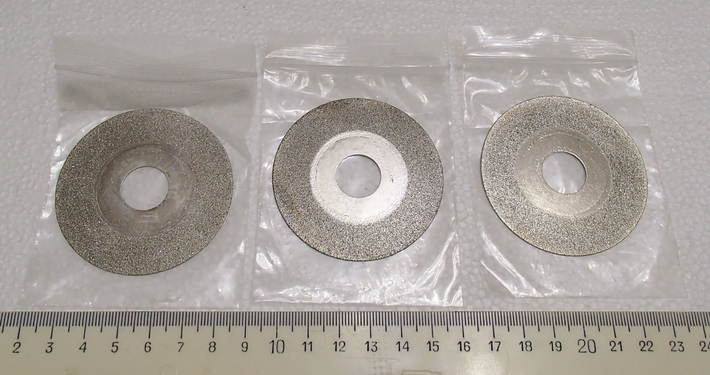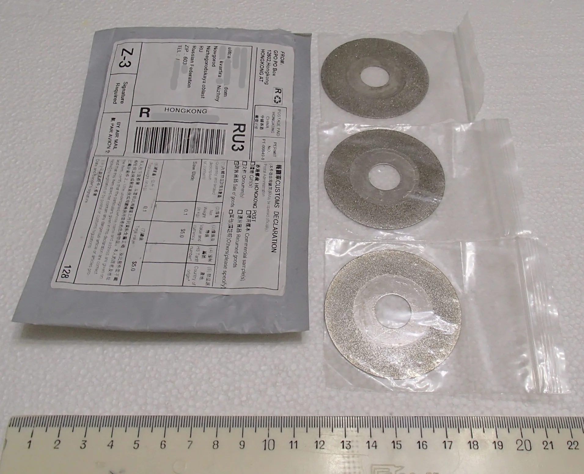 Заказал-оплатил - 2019-11-11. Получил посылку (Россия, Нижний Новгород) - 2019-12-03. Три недели. Упаковано - в почтовый пупырчатый пакетик. Диски - в своих пакетиках. Диски немножко в смазке.. Диски те, что надо. Взял (для мини-циркулярки. Стеклотекстолит режет просто как масло! И тонкий рез. Просто красота. Мои рекомендации и товара и продавца.