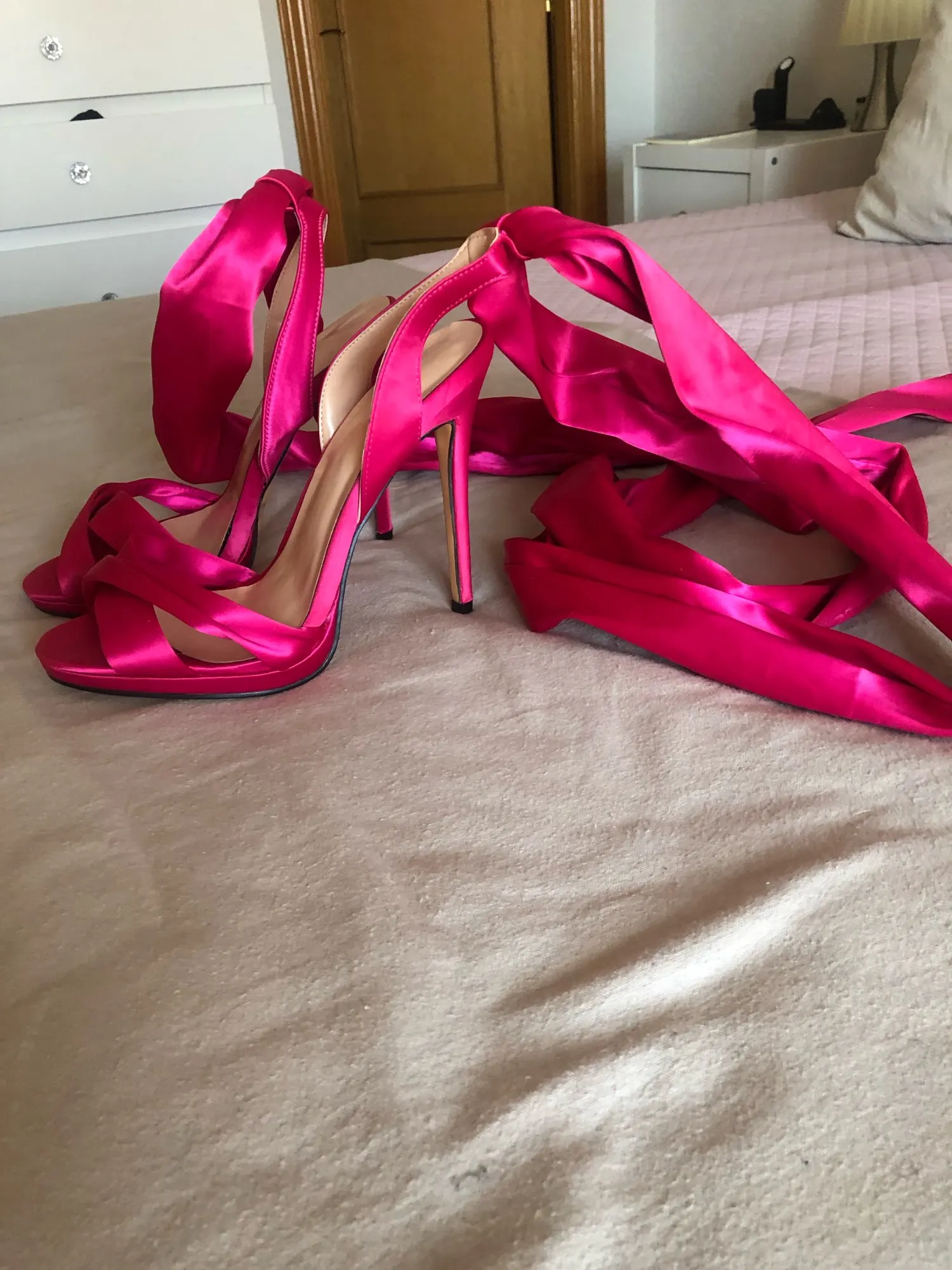 ALMUDENA/красные атласные босоножки с большим бантом, свадебные туфли на шпильках из шелковой ткани со шнуровкой и бантом-бабочкой, туфли-лодочки для сцены в стиле знаменитостей