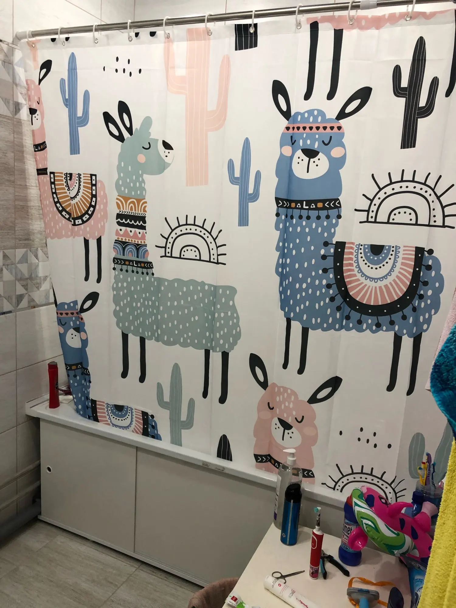 Очень крутая шторка, необычная и яркая. Соответствует описанию. Доставка составила месяц.