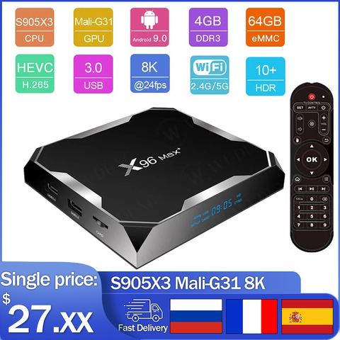 Android 9,0 X96 Max Plus Смарт ТВ Box Amlogic S905X3 4 ядра 4 г 32 г/64G 2,4G и 5,0G двухъядерный процессор Wi-Fi BT4.0 8K HD декодер каналов кабельного телевидения компьютерной приставки к телевизору PK X96Q