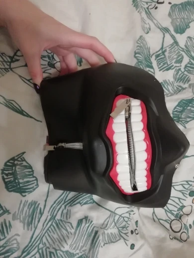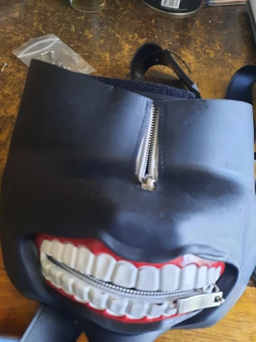 маска из толстой резины с очень неприятным химическим запахом. Не представляю как в ней можно дышать. кроме того, верхняя часть не прикреплена к нижней. в комплекте идут заклепки для самостоятельного прикрепления, но они сразу гнутся и ломаются, каким образом они должны соединять две части изделия -не понятно. С трудом удалось закрепить одну из них (на фото) . зубы с губамис одной стороны не приклеены. с продавцом не общалась, товар был отправлен быстро и пришел в указанные сроки.