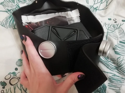 Ожидал более качественного материала, запах ужасный и почему-то маска была грязная внутри. Не критично за такую цену, но всё же... По поводу доставки, все пришло быстро, ещё не собирал и не мерил, т.к. запах мерзкий у маски.