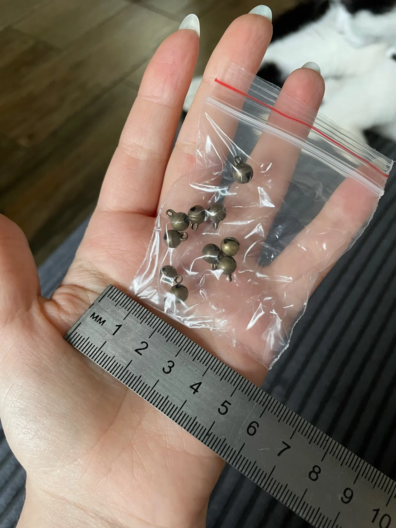 Отличные бубенчики. Товар и продавца рекомендую. Получила на отделение Новой почты. Брала 3 размера. 14, 12, 10 мм. Все супер. Пару немного приятных, но общее впечатление от покупки позитивное.