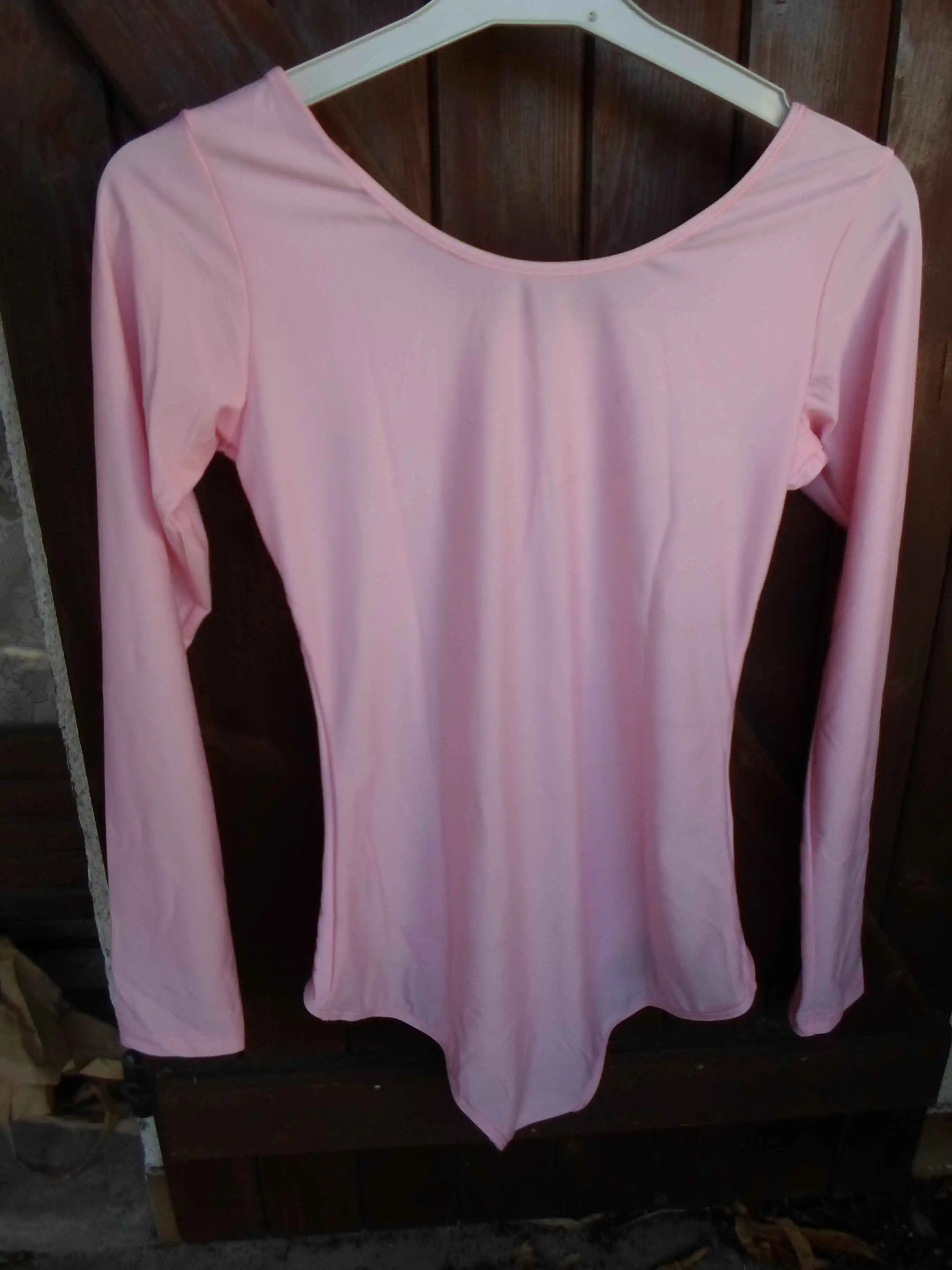 Aoylisey Для женщин розовый балетный танцевальный купальник с юбкой Одна деталь с длинными рукавами, боди с латиноамериканских танцев с овальным вырезом платья для занятия гимнастикой
