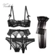 Атласный черный кружевной пояс с бахромой и бантом, 6 ремней, металлические зажимы, сексуальные пояса для чулок, женский пояс на подтяжках, н...